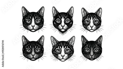 Mysterious array of nine identical feline faces in monochromatic design Vector