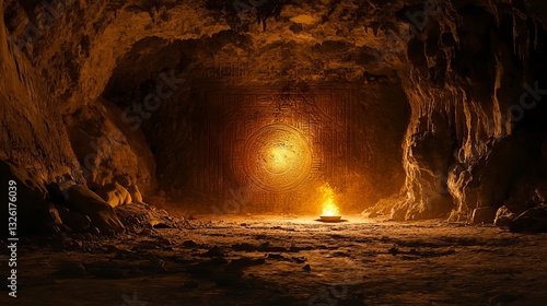 Mysterious Dark Cave Illuminated by Soft Light from Entrance Creating an Enigmatic Atmospheric Scene