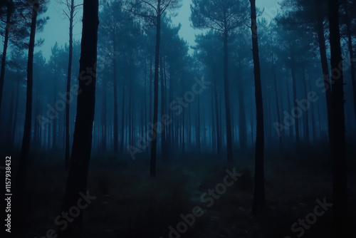 forest, fog, tree, twilight, dusk, mystery, eerie, dark, atmosphere, nature, wood, landscape, scenic, environment, shadow, silhouette, blue, dark blue, night, evening, mist, haze, path, trail, timberland, gloomy, mood, tone, texture, scenic view, natural, background, image, photo, photo, picture, still, calm, serene, tranquil, peaceful, quiet, solitary, isolated, deep, dense, thick