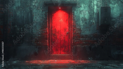 door, red, urban, alley, brick, light, mysterious, fog, entrance, architecture, texture, shadow, wall, city, night, glow, isolation, background, decorative, street, horror, fantasy, design, mystery, old, wooden, weathered, illuminated, single, unique, secret, ominous, scene, building, dark, neon, abandoned, creepy, narrow, surreal, vintage, energy, urban decay, aesthetic, detail, graffiti, surface, perspective