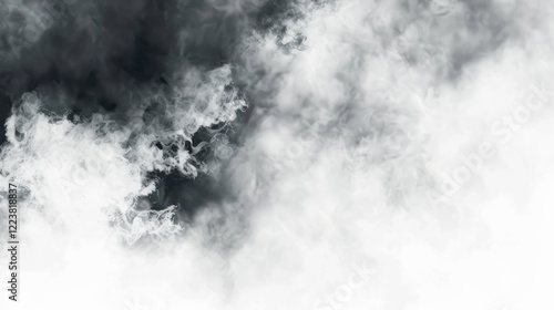 Mysterious smoke swirling in shades of gray and white, creating ethereal atmosphere. soft, flowing patterns evoke sense of intrigue and depth