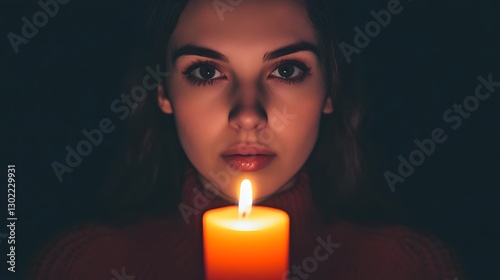 Mysterious Woman With Glowing Candle Surrounded by Darkness