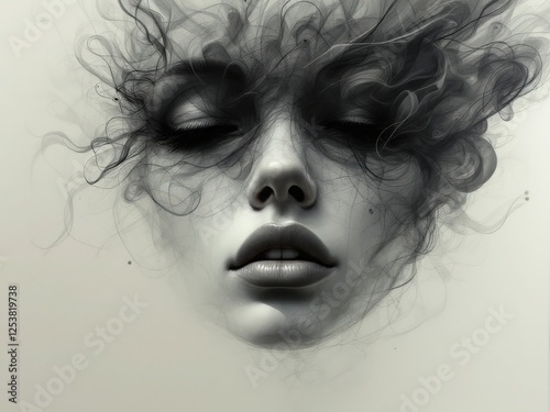 mystic, smoke, portrait, aethereal, beauty, monochrome, artistic, abstract, dreamy, surreal, fantasy, creative, smoky, face, woman, elegant, greyscale, black-and-white, modern, digital artwork, illustration, mysterious, enigmatic, haunting, ghostly, whimsical, imaginative, expressive, emotional, dramatic, evocative, artwork, contemporary
