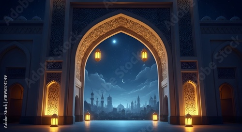 archway, celestial, city landscape, dreamy, mystical, night, ornate, starry, architecture, artistic, fantasy, illuminated, lamp, landscape, light, magic, moonlight, mythical, night time, oriental, sky, visionary, whimsical, dusk, lead, under