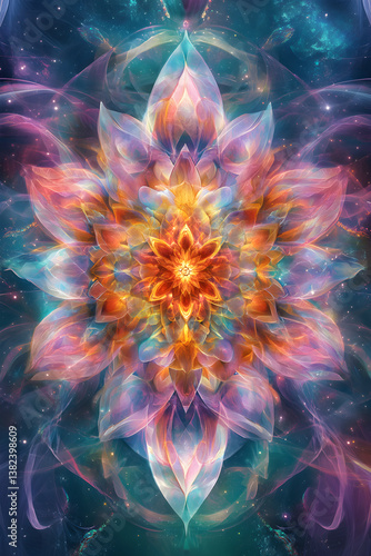 Mystical Bloom of Xenophya: A Cosmic Dance of Light, Color and Symmetry in an Abstract Universe