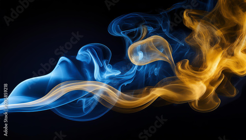 Mystical Blue and Gold Smoke on Black Background,Elegant Blue-Gold Smoke Swirls for Artistic Backgrounds, Vibrant Blue and Gold Smoke Effects for Creative Designs