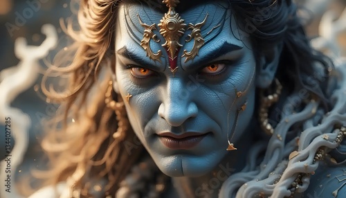 Mystical Character with Blue Skin and Intense Gaze Fantasy Portrait