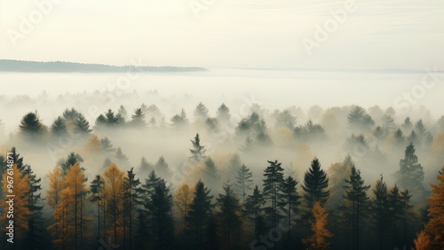 Mystical Foggy Forest: Serene Nature Landscape in Autumn Mist