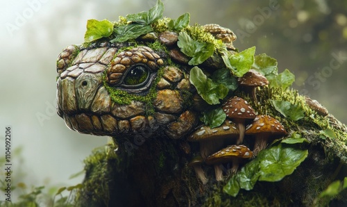 nature, mystical, creature, turtle, leaf, mushroom, forest, enchanting, wildlife, greenery, lush, magical, fantasy, timberland, natural, wilderness, organic, environment, serene, foliage, tranquil, moss, intricate, detailed, peaceful, ecosystem, imaginative, verdant, mythical, artistic, unique, rustic, mysterious, decorative, earthy, whimsical