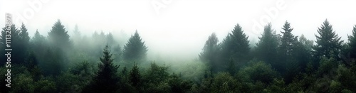 mystical forest landscape in misty fog with detailed trees and soft light atmosphere