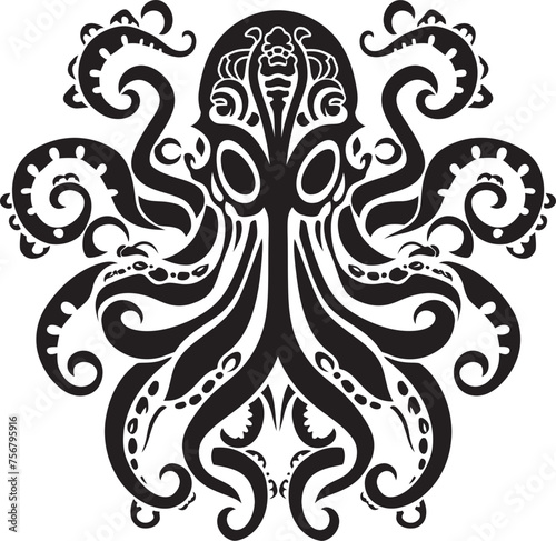 Mystical Meditations: Octopus Mandala Art Vector Icon in Black Mystical Octopus Mandala: Vector Black Logo Icon Design