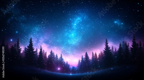 night sky, forest, star, galaxy, mystical, landscape, tree, cosmic, space, nightscape, serene, nebula, purple, blue, scenery, calmness, atmosphere, beauty, night, peaceful, starry, view, environment, nature, illuminated, heaven, sky, depth, light, scenic, vibrant, magical, calm, exploration, imagination, night time, celestial, tranquil, outer space, panorama