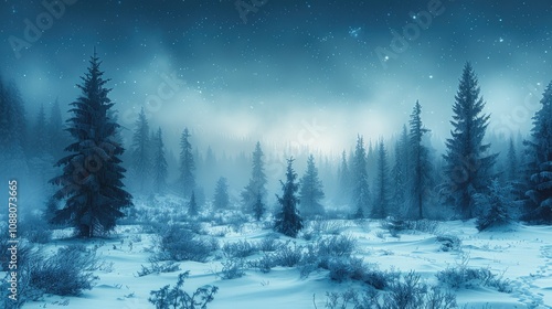 night, winter, forest, snow, tree, sky, star, fog, cold, landscape, nature, mystical, magical, serene, peaceful, calm, quiet, dark, blue, white, frost, icy, spruce, fir, pine, branch, ground, plant, scenic, view, beautiful, amazing, stunning, picturesque, atmosphere, ambience, environment, outdoors, wilderness, season, holiday, december, jan, february, christmas, new year, travel