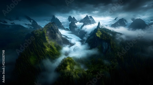 Mystische Berglandschaft mit Nebel – Dramatische Naturkulisse in den Alpen