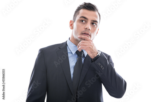 man, pensive, considered, isolated, manager, businessman, businessman, business, businessman, cravat, suit, shirt, blue, black, face, look, eye, brown, strategy, puzzled, problem, response, resolution, searching, portrait, fine-looking, attractive, pretty, businessman, entrepreneur, employee, career, occupation, job, work, expression
