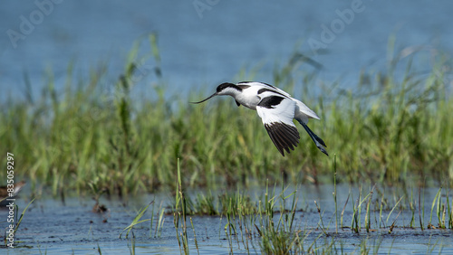 animal, vogel, avocet, close-up view, reed, water, black, white, wildlife