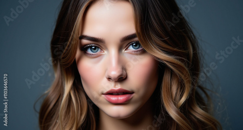 woman, beauty, face, hair, model, fashion, make-up, eye, glamour, dark-haired, skin, lip, closeup, person, people, studio, coiffure, organic, head, lady, smile, elegance, 1, style