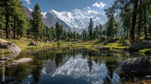 Nanga Parbat Reverberated in a Serene Pond at Fairy Meadows: A Stunning Alpine Adventure Destination Surrounded by Lush Green Forests