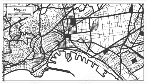 Naples Italy City Map in Black and White Color in Retro Style. Outline Map.