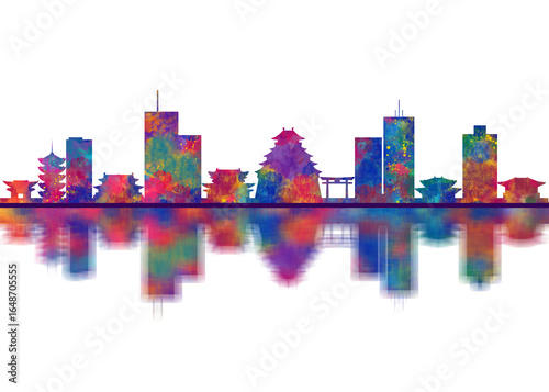 nara, japan, city, skyline, city landscape, landscape, watercolor, abstract, painting, travel, illustration, urban, art, modern, downtown, landmark, skyscraper, artwork, colourful, print, poster, architecture, japanese, digital, home, decor, wall, building, design, view, graphic, business, trendy, asia, capital, printable, banner, travel destination, city, district