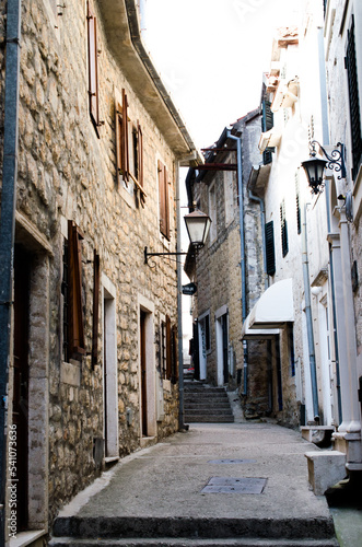 Narrow street in Herceg Novi, Montenegro, stock photo