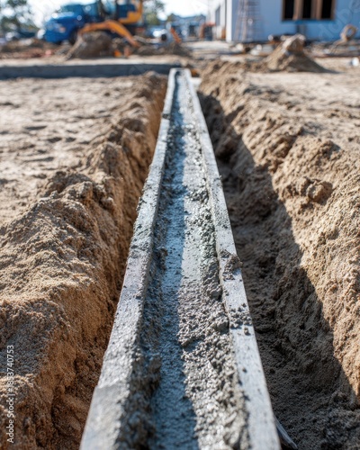 cement, trench, construction, site, wet, concrete, building, ground, dirt, foundation, preparation, excavation, grooved, grooved, line, edge, work, outdoors, day, sandy, dirtied, gravel, material, structure, project, industry, barrier, border, frame, grey, beige, rough, textured, vertical, perspective, shallow, depth, field, build, formwork, poured, footed, level, straight, rectangular, oblong, long, narrow