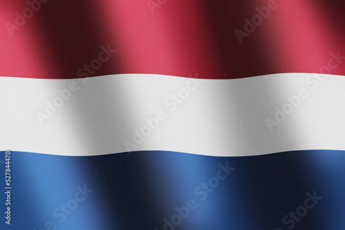 National flag of the Netherlands. Dutch tricoor flag with horizontal of red, white, and blue with smooth wind wave for banner or background. National symbol of Netherlands. Waves ripples on flag