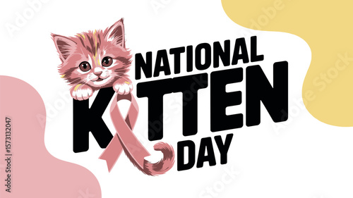 National Kitten Day Cute Cat Illustration with Playful Typography and Pastel Background