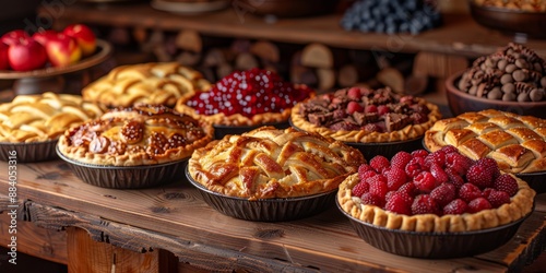 ai, food, sweet, pastry, dessert, red, cake, berry, fresh, tart, delicious, bakery, homemade, raspberry, wooden, table, epicure, crust, summer, tasty, pie, custard, sugar, background, fruit, baked, national, day, assorted, pie, september