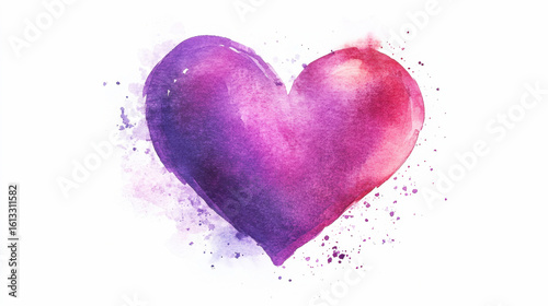 National Purple Heart Day. Watercolor heart design in vibrant purple and pink for romantic and artistic projects