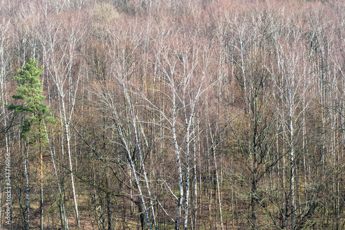 fruitbody, green, forest, tree, spring, march, season, bare, trunk, wood, park, parkland, up high, aerial, top, view, sunny, day, nature, grove, natural, background, landscape, scenic, scenery, moscow, russia, russian, weather, brown, white, dense, panorama, pine, timberland, horizontal, empty, nobody