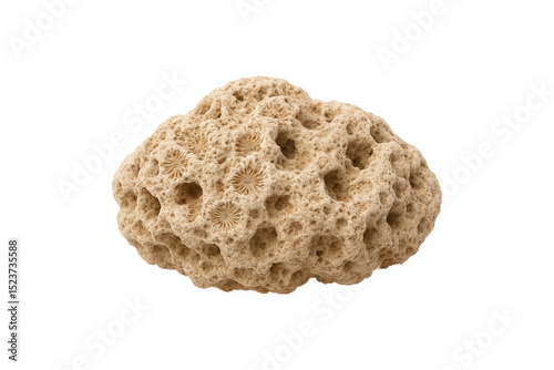 Natural coral rock isolated on transparent background. Porous texture and organic shape. Perfect for marine biology illustrations, ocean-themed designs, and educational materials