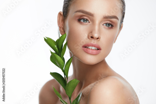 Natural Cosmetics For Skin. Beautiful Woman With Healthy Skin
