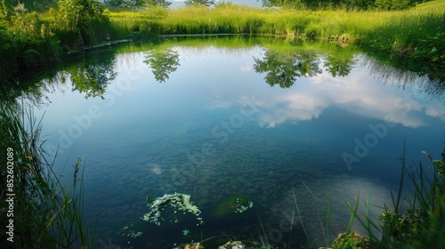 natural, lake, duck pond, space, text, background, water, sky, summer, travel, nature, tree, landscape, forest, garden, green, blue, park, vacation, environment, beautiful, relax, river, foliage, rural, countryside, inscription, scene, picturesque, copy, scenic, tranquil
