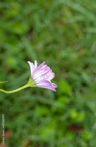 Natural Purple Daisy with rain drops and green blur background, flowers photography