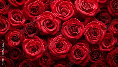 Natural red roses background. Color of the holiday. Gift to a woman. Deep red color.
