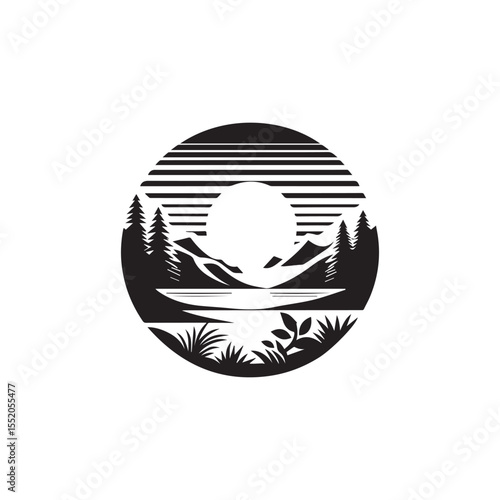 vector, illustration, editable, image, background, cartoon, outline, monochrome, line, nature, black-and-white, ink, scene, monochromatic, linear, drawing, line art, scenery, landscape, nobody, no people, art, flat, design, summer, environment, storytelling, natural, tree, forest, black-and-white, spring, graphic, graphic design, peaceful, scenic, wood, mountain