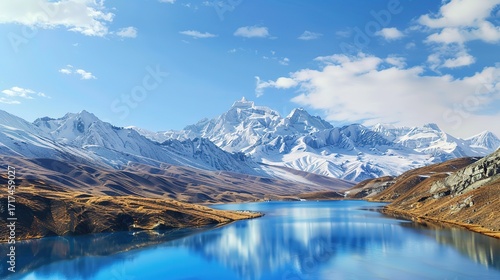 Natural scenery of snow - capped mountains and lakes,Skyward View: Stunning Scene of Looking Up at Modern Glass Office Buildings – Sleek High-Rise Towers with Floor-to-Ceiling Glass Facades