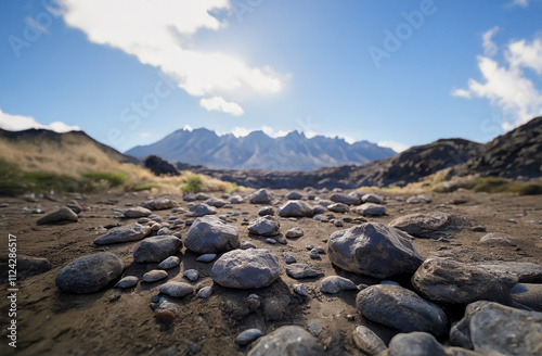 Natural volcanic rocks paired with pebbles and mountains