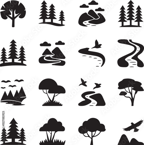 Nature and Wilderness Icons Set - Outdoor Adventure Symbols