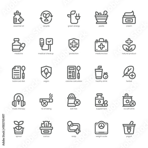 Nature Health icon pack for your website, mobile, presentation, and logo design. Nature Health icon outline design. Vector graphics illustration and editable stroke.