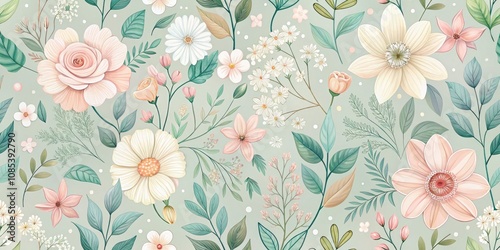 Nature Inspired Seamless Pattern with Floral Motif in Soft Pastel Colors for Tranquil Home Decor, Fashion, and Stationery Design