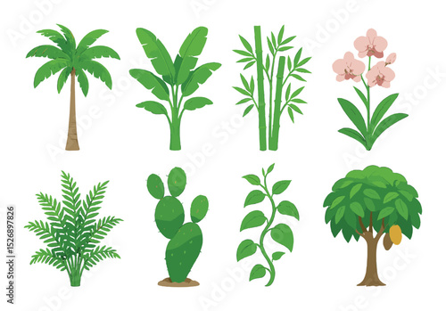 plant, nature, icon, flat, botanical, garden, design, green, flora, foliage, leaf, tropical, tree, vegetation, symbol, cactus, palm, bamboo, orchid, fern, vine, tree, grass, shrub, bush, natural, art, decorative, element, exotic, eco, organic, bloom, blossom, herbal, agriculture, landscape, environment, jungle, forest, silhouette, wildlife, freshness, growth, texture