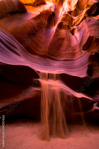 Nature sand falls Antelope Canyon, the famous slot canyon in Navajo reservation near Page, Arizona, USA -