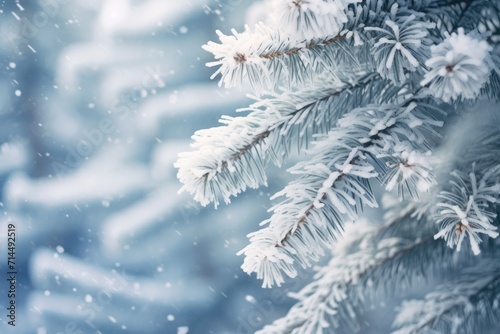 Nature Winter background with snowy pine tree branches