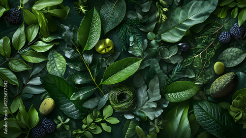 Nature-inspired green leaf arrangement indoor setting botanical art freshness top-down view organic concept