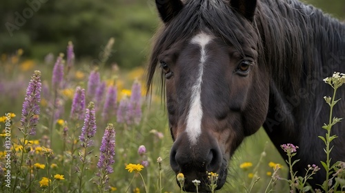 wildflower, nature, equine, closeup, horse, floral, countryside, beauty, wildlife, pet, farm, serene, outdoors, animal portrait, equestrian, scenic, landscape, charming, peaceful, flora, fauna, summer, spring, natural beauty, pony, grazing, habitat, environmentally friendly, biodiversity, organic, animal welfare, tranquil
