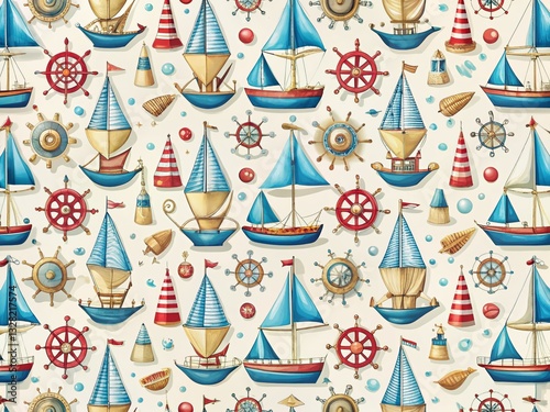 nautical, sailing, marin, texture, background, wallpaper, pattern, abstract, travel, ocean, sea, boat, ship, rope, wheel, anchor, sail, wave, water, blue, white, red, design, fabric, textile, print, surface, style, element, graphic, illustration, artistic, creative, photo, image, digital, art