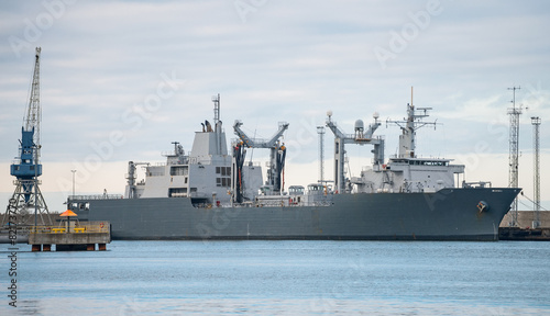 port, sea, ocean, maritime, industry, marin, ship, auxiliary, vessel, water, transport, transportation, industrial, trade, boat, dock, bay, harbor, large, combat, military, nautical, logistic, navigation, cargo, shipping, support, fuel, diesel, ancillary, tank, refill, gasoline, deck, loading, international, mission, aid, warship, naval, crane, coastal, dockyard, metal, mooring, nobody, oiler