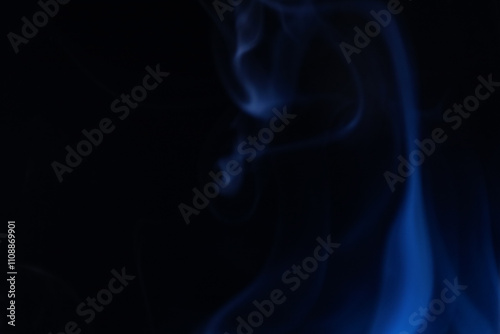 Navy blue coloured fog, bright lines, vibrant smoke on the dark background, colourful abstract, blue fog, fantastic shapes